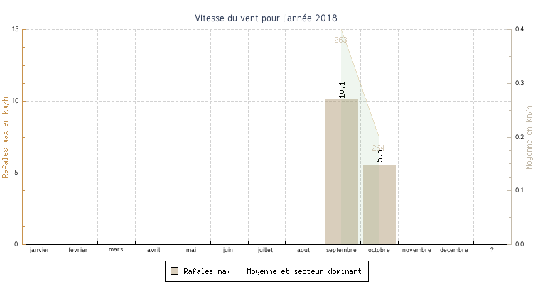 | septembre | 4.7 °C | 11.7 °C | 31.2 °C | 25.0 °C | 17.9 °C | 0.4 km/h | 10.1 km/h | 263 |